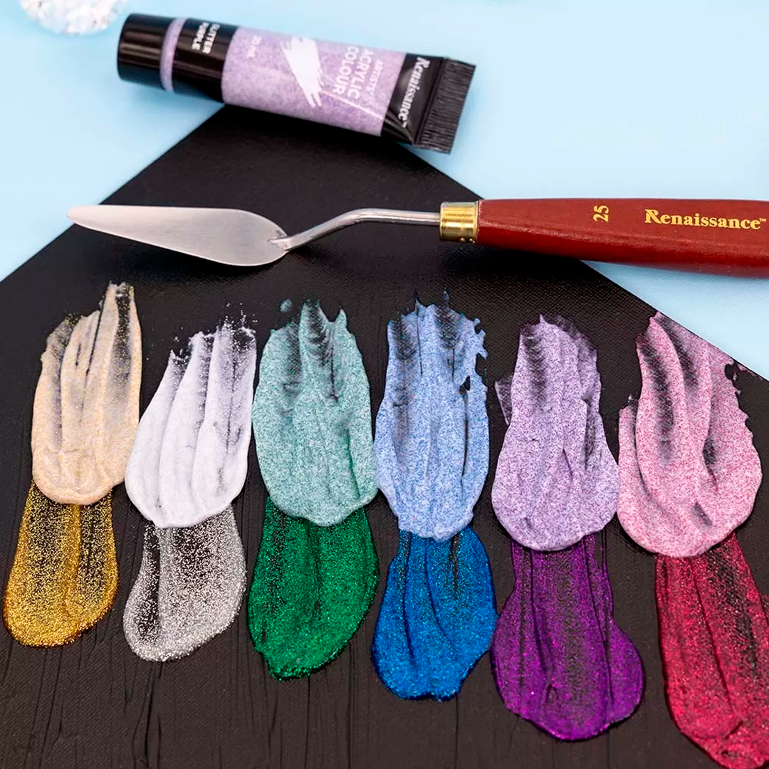 Tämä akryylimaalisetti on oikea valinta, kun haluat lopputuloksesta glitterisen kimmeltävää.